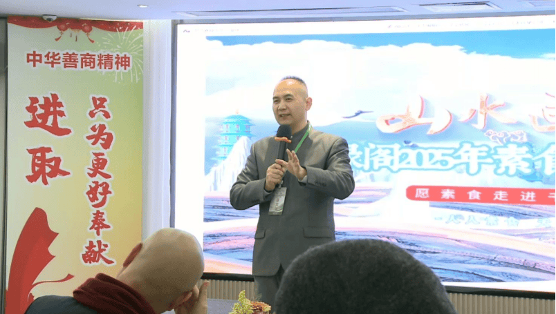 河南素绿阁餐饮管理有限公司董事长、河南素食宴席团队发起人冯海旭以“以善心担当,必得素缘相助”为主题,讲述了自己在素食事业中的坚守与担当,以及收获的温暖与支持。