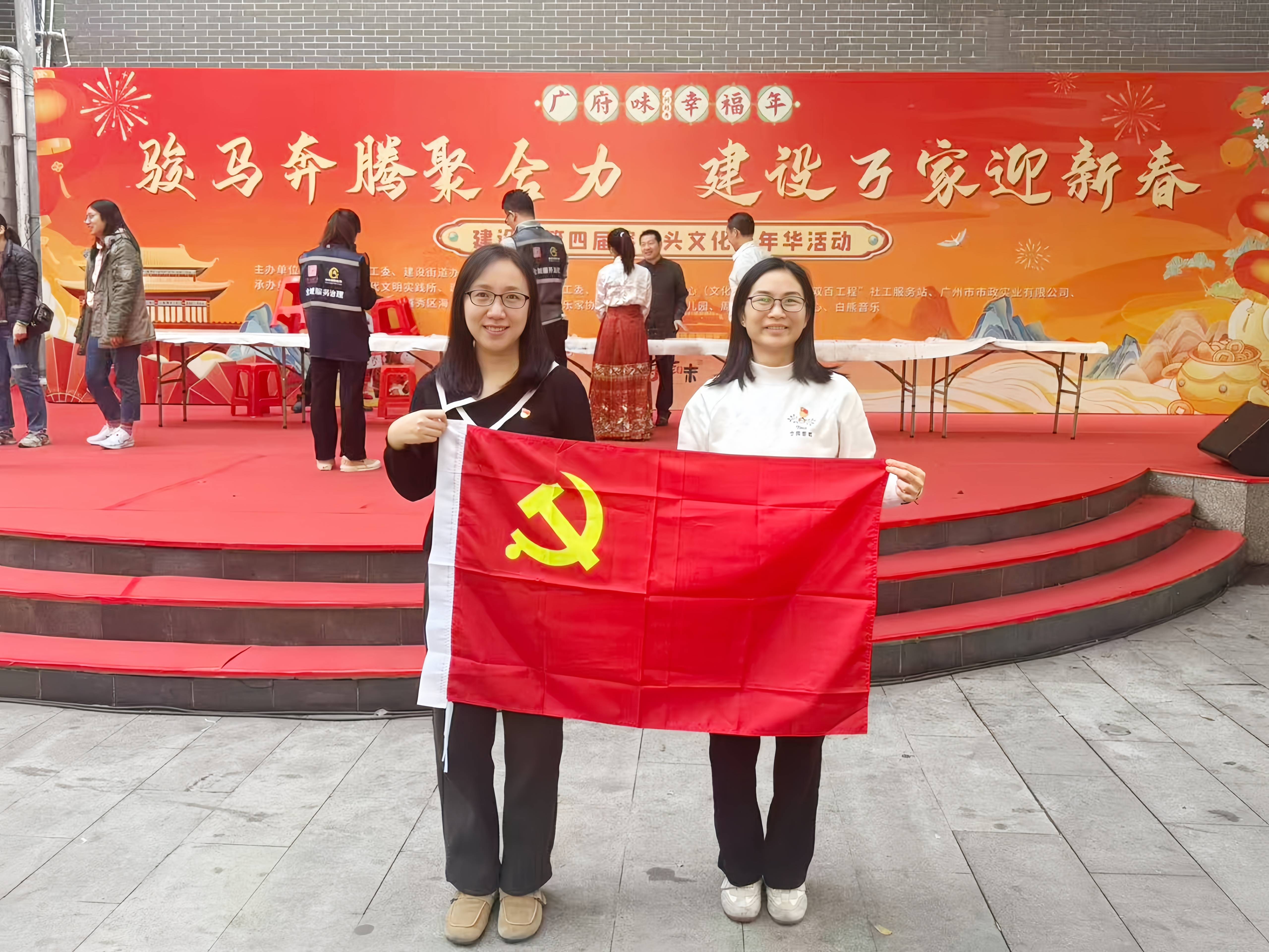 1月29日下午,由建设街主办、榕树头文化广场协办的“骏马奔腾聚合力,建设万家迎新春”文化嘉年华在榕树头广场举行。基金会副秘书长王娜(党员)、项目主任黎顺填(党员)代表出席。