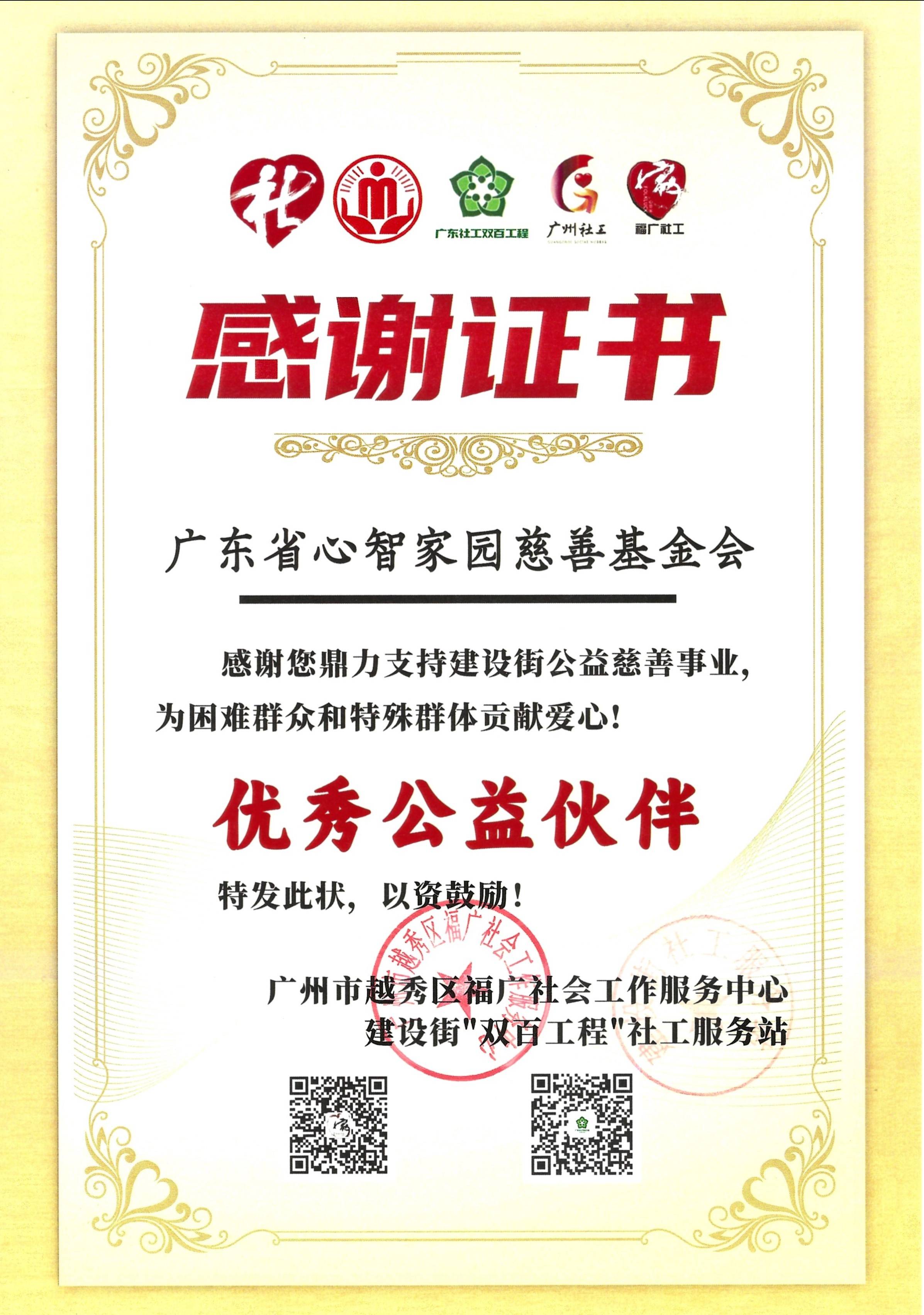 活动中,广东省心智家园慈善基金会被授予“优秀公益伙伴”荣誉称号,并获颁感谢证书,以表彰我会长期以来对建设街困难群众和特殊群体的持续帮扶。此次活动进一步深化了基金会与街道、社区及合作单位的协同关系。未来,我们将继续积极参与基层治理与社区共建,推动公益服务与社区发展深度融合,助力构建和谐美好家园。