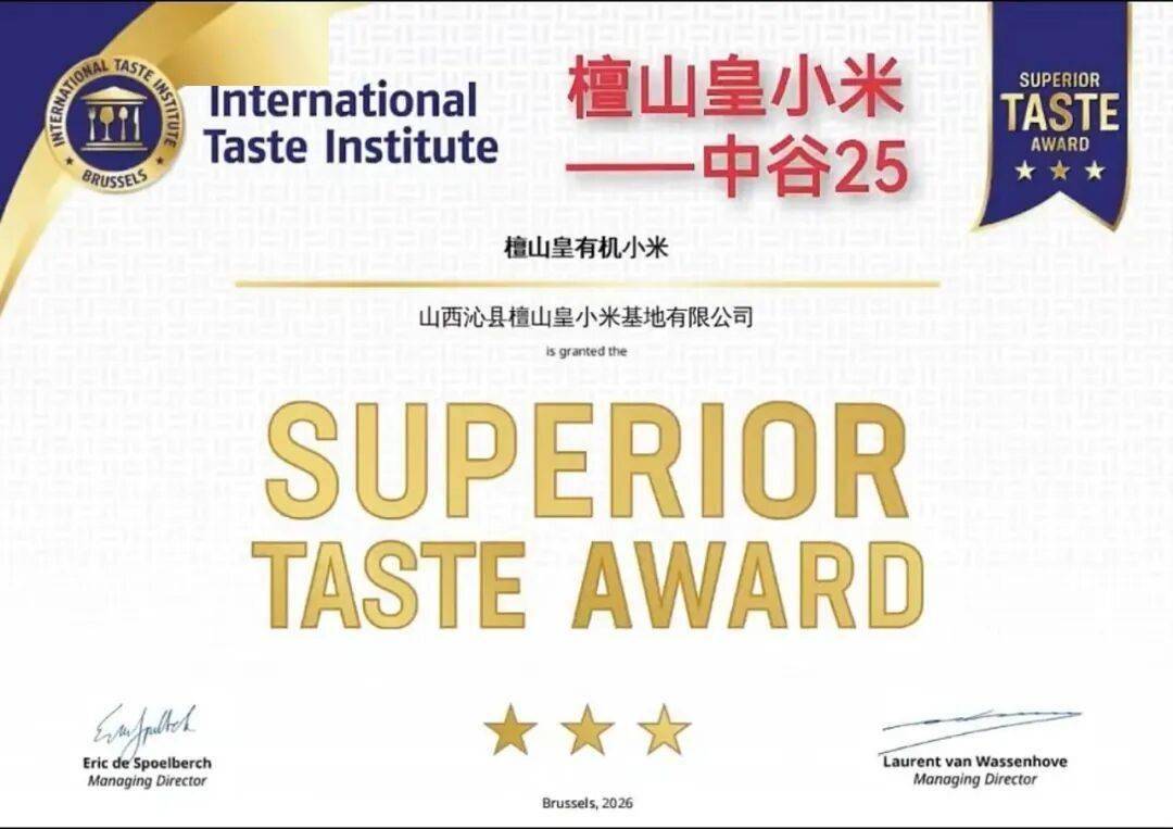 檀山皇小米颗粒饱满、粥油丰润、自然甘甜,其独特风味源于不可复制的风土条件。农场扎根于“中国小米之乡”——山西沁县檀山凤凰台,北纬36°的黄土高原腹地,昼夜温差大、年均日照超2500小时,土壤富含钾与硒元素,水源为天然弱碱性岩溶水,构成纯净的生态闭环。作为中国首家通过德米特(Demeter)生物动力认证的小杂粮农场,檀山皇摒弃化肥与农药,依循月相与节律耕作,以古老智慧唤醒土地原生力。其核心种源“中谷25号”由中国农科院精心培育,兼具高淀粉、高蛋白与优异适口性。目前,产品已全面通过欧盟EC与美国USDA有机认证,569项农残检测全部“未检出”,安全标准远超国际阈值。更令人瞩目的是,檀山皇小米荣获国际风味评鉴所(ITI)2026年度最高级别“三星美味大奖”,成为全球有机谷物中的风味标杆。