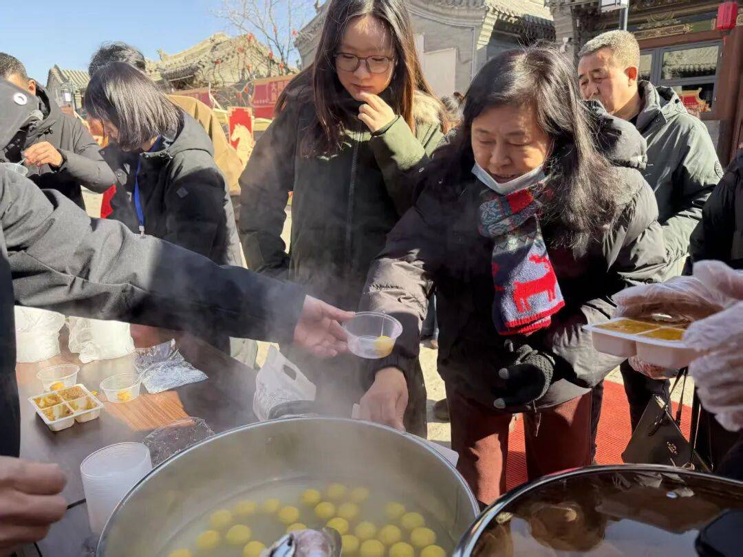 在市集入口处的口泉田锦农业展位前,试吃的游客络绎不绝。企业现场煮制的黍米汤圆和黄米凉糕香气四溢,软糯香甜的口感赢得一致好评。田锦农业负责人介绍,“现场免费试吃的黍米汤圆、杂粮馒头和小米粥都是由我们的优质有机杂粮原料制作的,希望把最地道、最健康的年味儿送到大家身边”。此外,黄米凉糕同样备受青睐,金黄软糯、清凉爽口,成为游客打卡必买单品。不少外地游客现场扫码下单,直接与亲友分享这份“大同味道”。